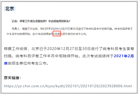 更新六个城市 | 2021考研初试成绩查询时间